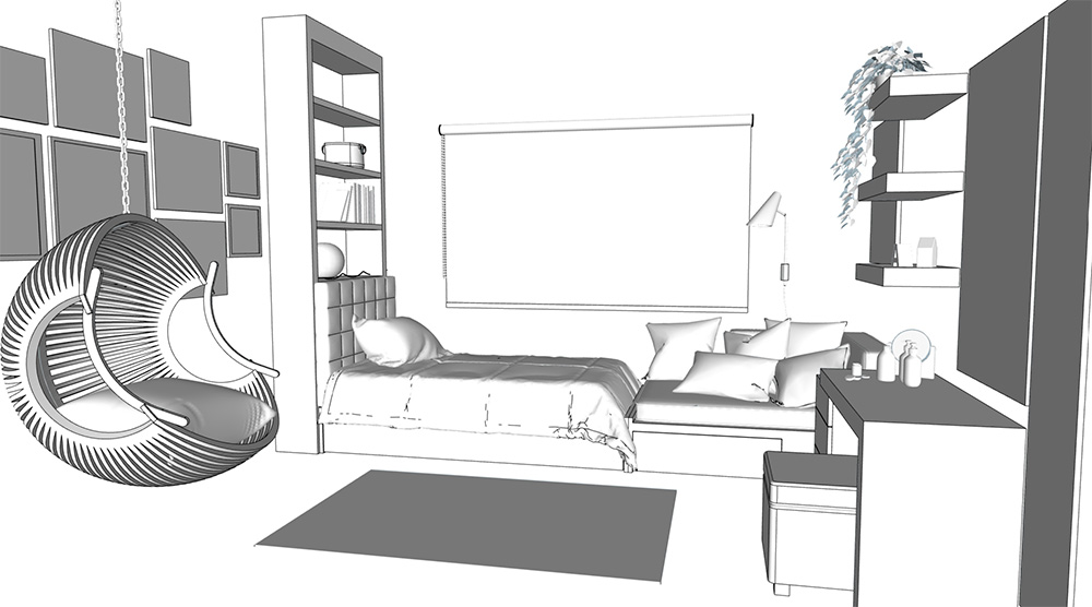 Esta recámara se hizo para una adolescente que disfruta mucho leer, bailar y pasar tiempo con sus amigas.