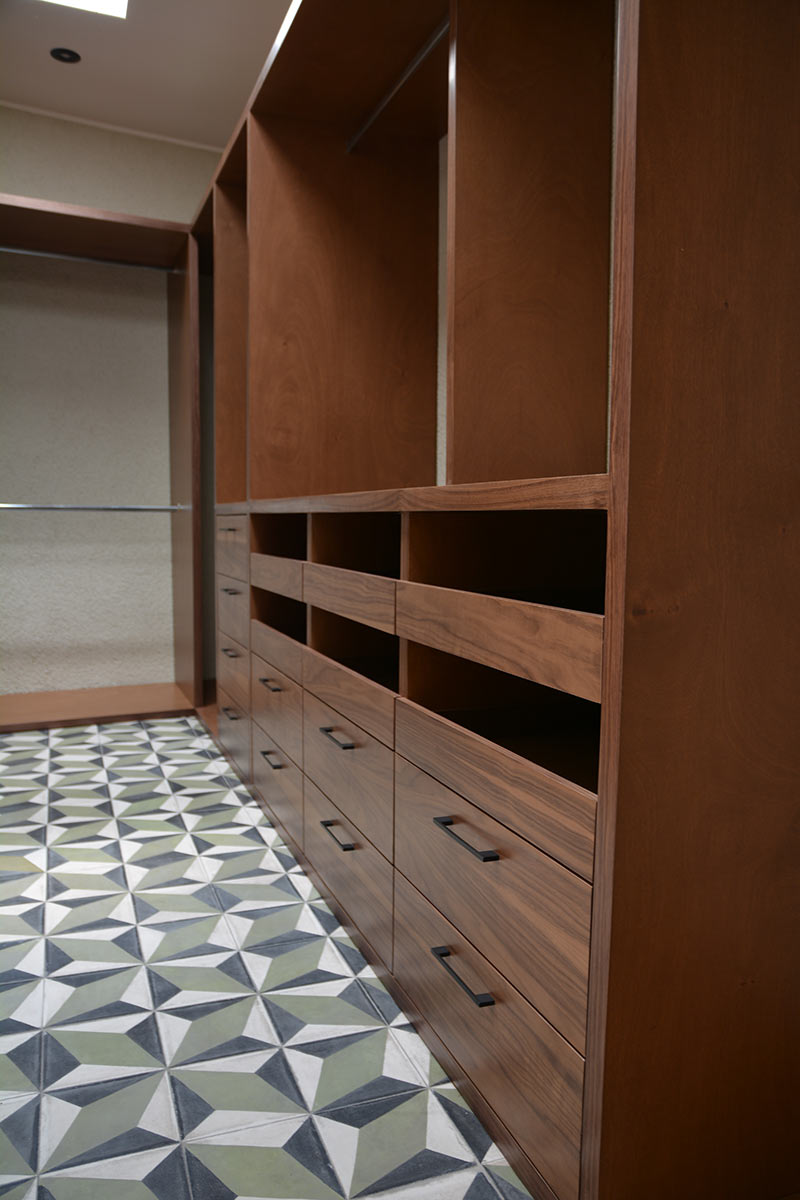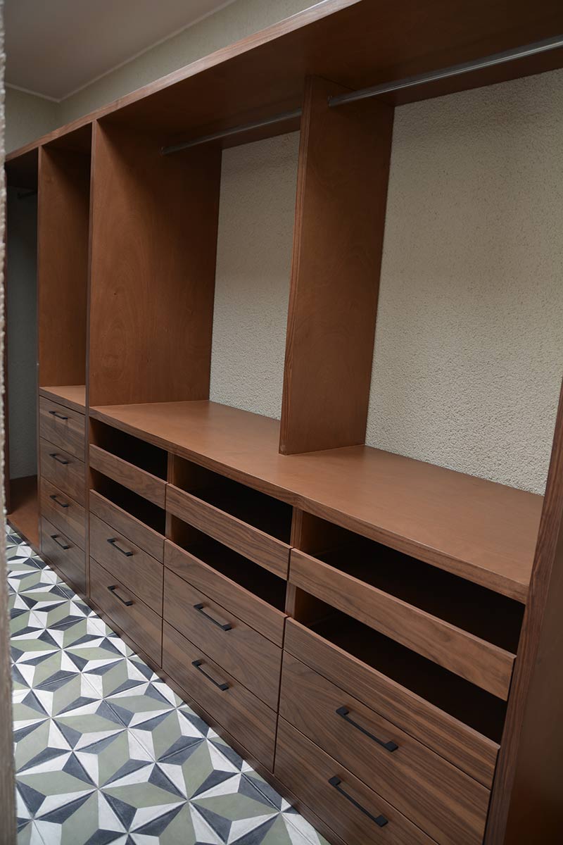 Este es un ejemplo de cómo trabajamos y pensamos en las áreas privadas de las personas, ya que existen muchos factores para decidir cuántos cajones, charolas, zona de colgado o zapateras utilizar en cada caso.